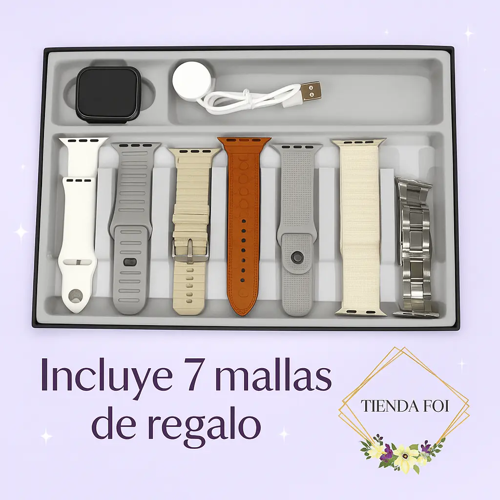 Incluye 7 mallas intercambiables para combinar con tu outfit, tu energía o simplemente tu estado de ánimo.